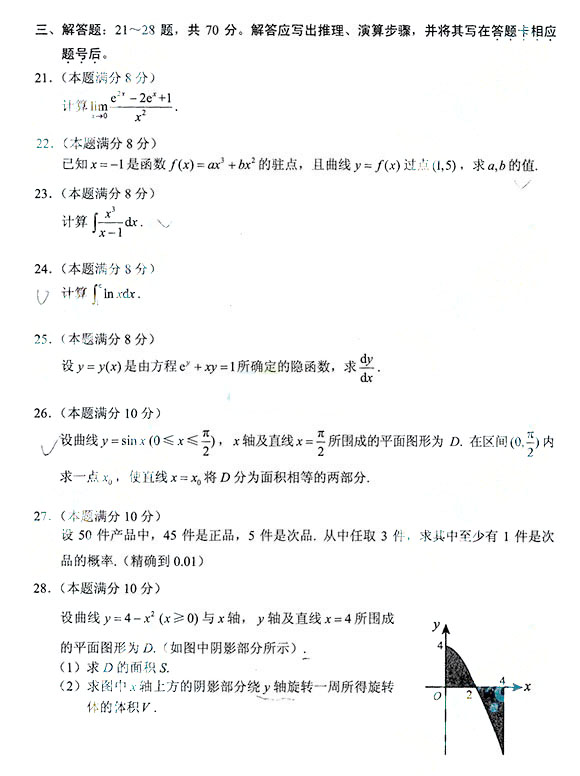 2014年成人高考(专升本)《高等数学二》真题及答案